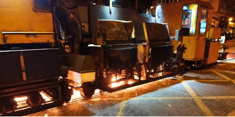Estos trabajos se incluyen en las labores de mantenimiento de vía e infraestructura que se realizan de forma continua por parte de FGV en las líneas de tranvía de Tram d’Alacant y se desarrollan en jornada nocturna con un tren amolador.