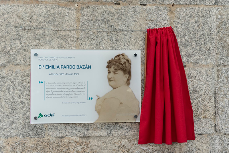Adif ha homenajeado a la escritora gallega Emilia Pardo Bazán, en el centenario de su fallecimiento, con una placa en su recuerdo en la estación de La Coruña.