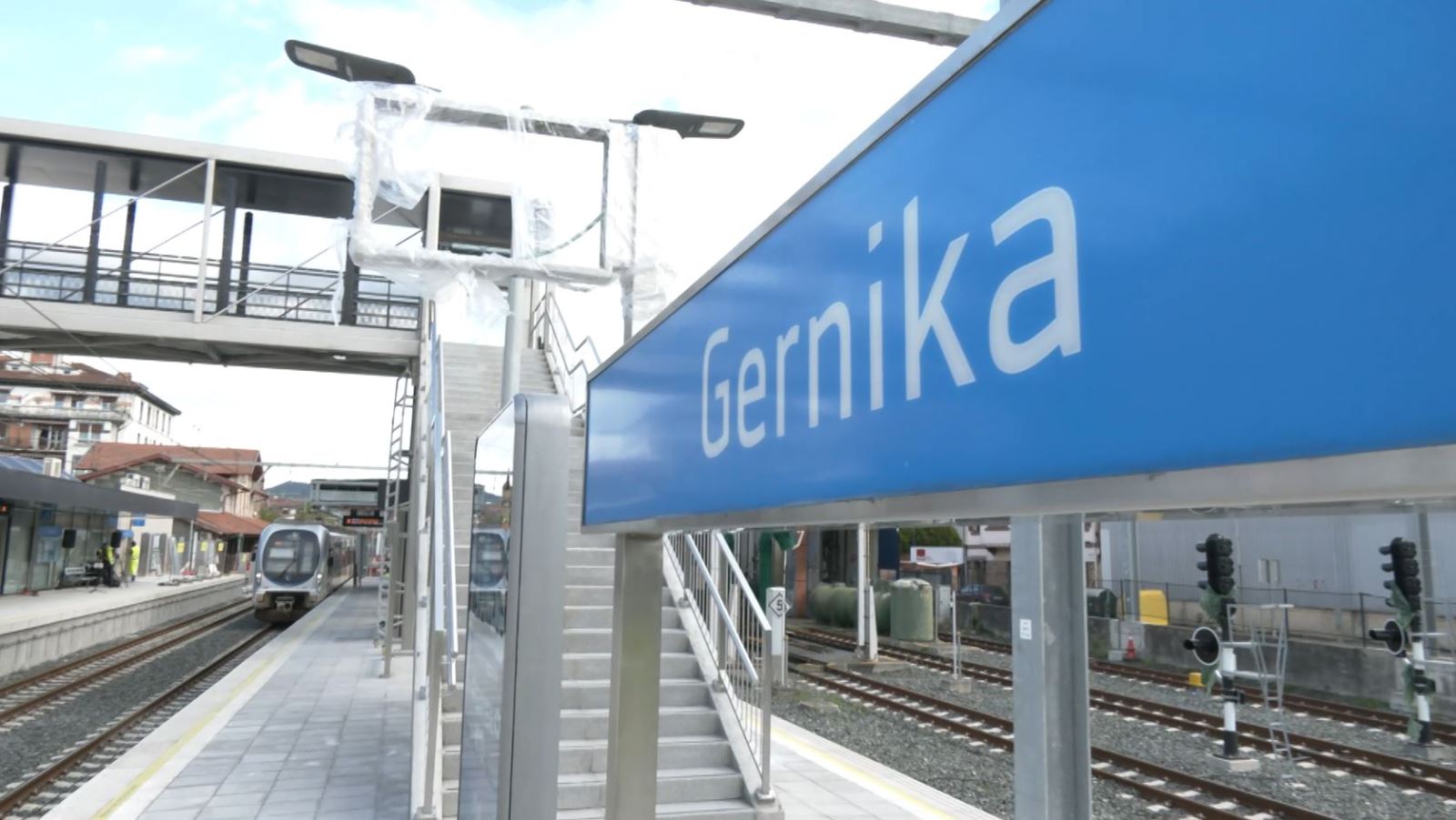 Euskal Trenbide Sarea, ETS, pondrá en servicio este viernes la nueva estación de ferrocarril de Guernica. Los trabajos en la terminal han incluido la supresión del paso a nivel entre andenes mediante la construcción de una pasarela elevada sobre la vía y se suman a los realizados en los últimos años para la renovación integral de las vías, catenaria y señalizaciones en las instalaciones ferroviarias del municipio vizcaíno