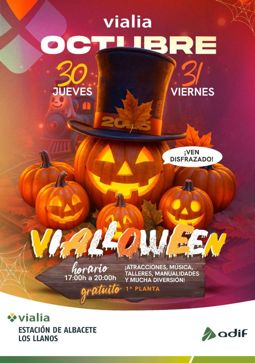 La estación Vialia Albacete Los Llanos inicia la temporada de actividades de otoño con la celebración de Halloween hoy y mañana, en horario de 17.00 a 20.00 horas, con sendas fiestas infantiles de carácter gratuito, bautizadas como ‘Vialloween’.