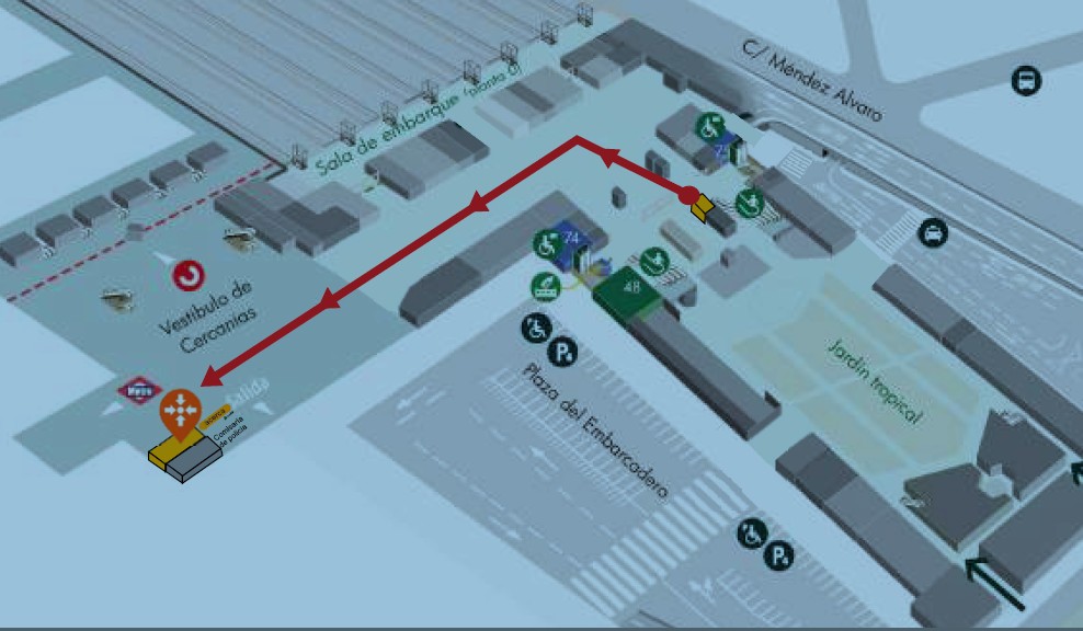 El nuevo centro de Adif Acerca cambia además de ubicación dentro de la estación: está situado junto a la puerta de acceso desde la plaza del Embarcadero, al lado del vestíbulo de Cercanías, un emplazamiento próximo tanto a las salas de embarque como a una de las principales entradas y salidas de estación.