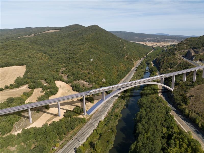 Las actuaciones para la construcción de la plataforma ahora licitadas contemplan la construcción de, entre otras estructuras, trece viaductos, entre ellos el del río Zardorra, con los que el trazado se adapta a la orografía de la zona y se integra respetuosamente en el entorno.