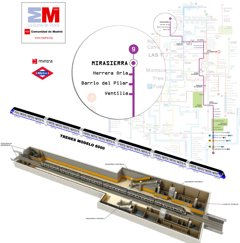 Este primer tramo hasta Mirasierra de la ampliación por el norte de la línea 9, ha supuesto la construcción de un túnel de un kilómetro y medio de longitud a partir de la estación de Herrera Oria y una inversión de 110 millones de euros.