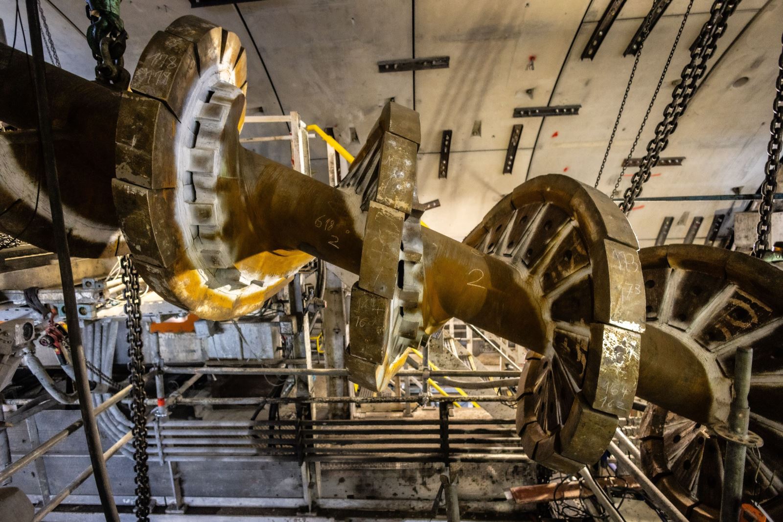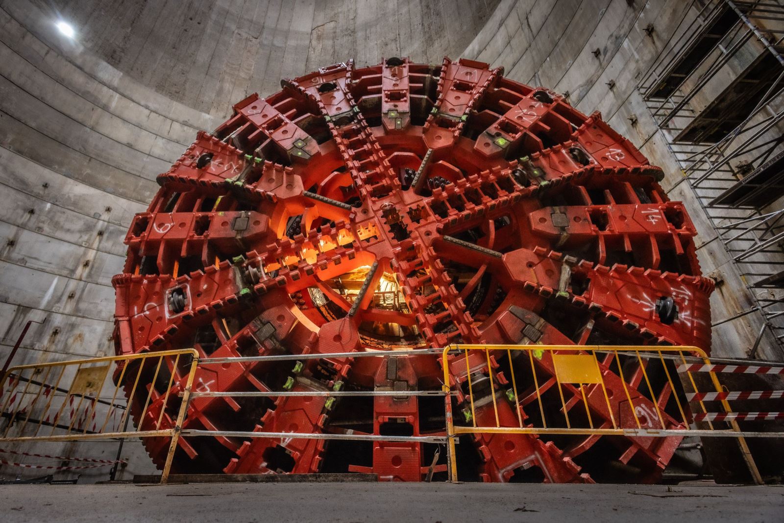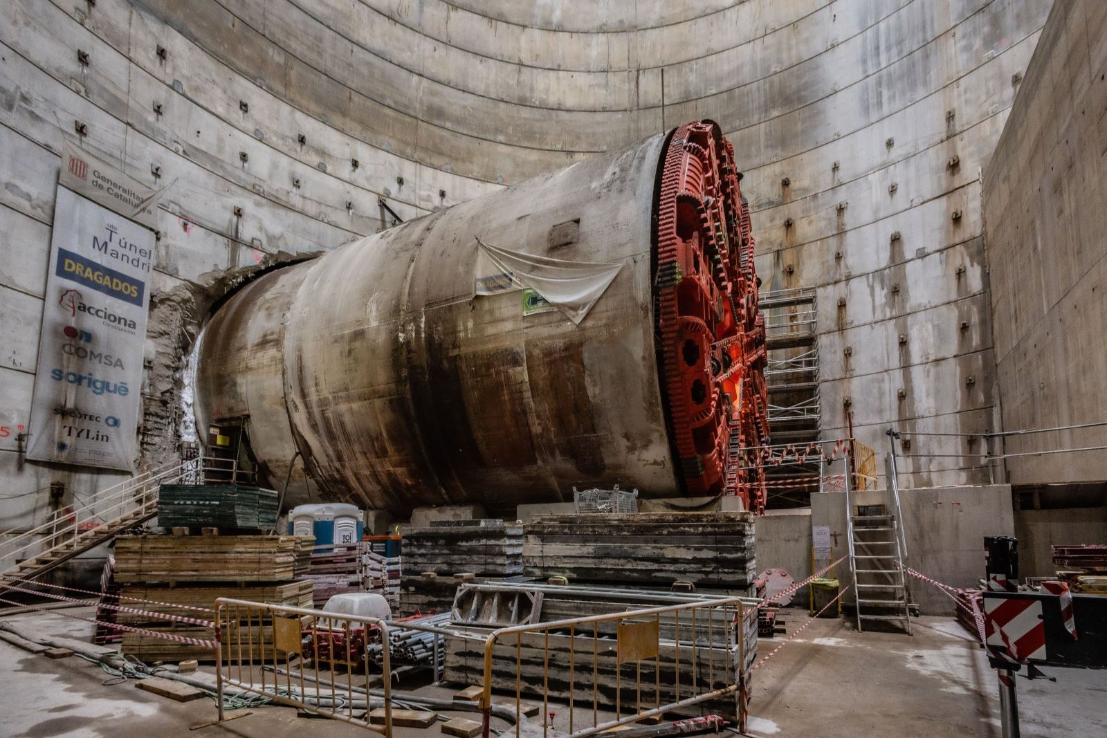 La tuneladora, de cerca de 100 metros de longitud y 12 metros de diámetro, se encuentra actualmente en el pozo de Mandri, donde en los últimos meses se han llevado a cabo tareas de mantenimiento y puesta a punto. Entre estos trabajos, destaca la sustitución de la rueda de corte por una nueva, también híbrida (mixta), orientada principalmente a la excavación del tramo de pizarras a altas presiones de trabajo. Completadas las tareas necesarias, incluyendo los trabajos previos de acondicionamiento del pozo de Mandri, la tuneladora reanudará su avance próximamente.
