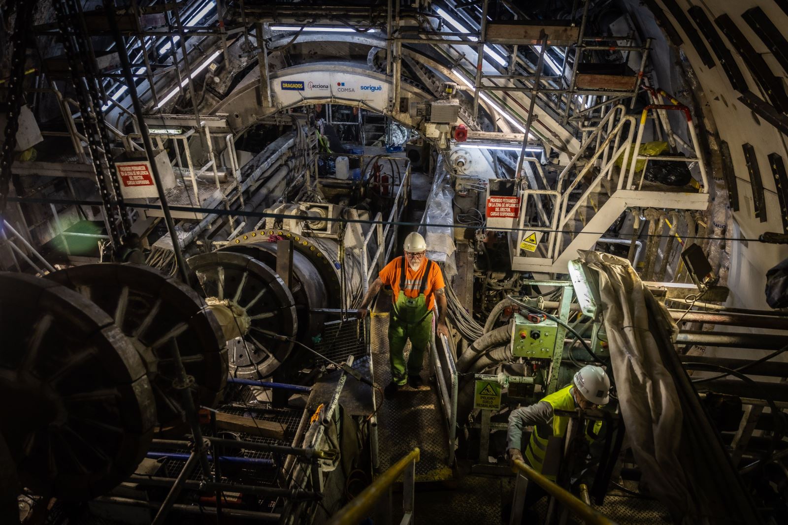 La máquina pesa más de 2.300 toneladas y, con la nueva rueda de corte, está equipada con más de 200 herramientas de corte. El sistema de excavación del túnel es de sección completa, con cinta transportadora para evacuar el material excavado al exterior, y una de sus principales características es que mantiene la presión adecuada del frente de excavación e instala el revestimiento definitivo del túnel a medida que avanza.