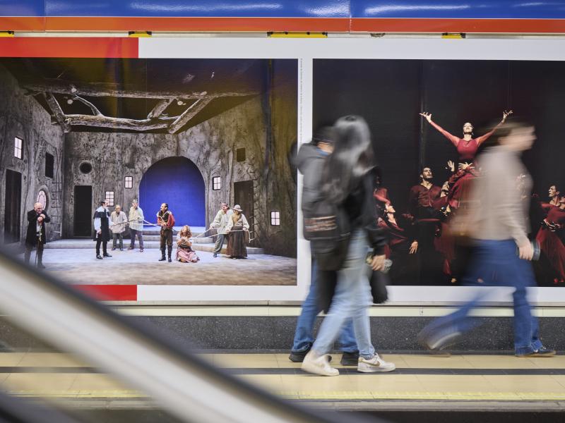 En la estación de Canal, los usuarios ya pueden disfrutar de imágenes del Ballet Español de la Comunidad de Madrid y de la obra teatral de El alcalde de Zalamea, versión de este texto cumbre del Siglo de Oro firmado por Calderón de la Barca producido por el Ejecutivo autonómico para Teatros del Canal con dirección de José Luis Alonso de Santos, entre otras manifestaciones de artes escénicas vinculadas con este espacio cultural.