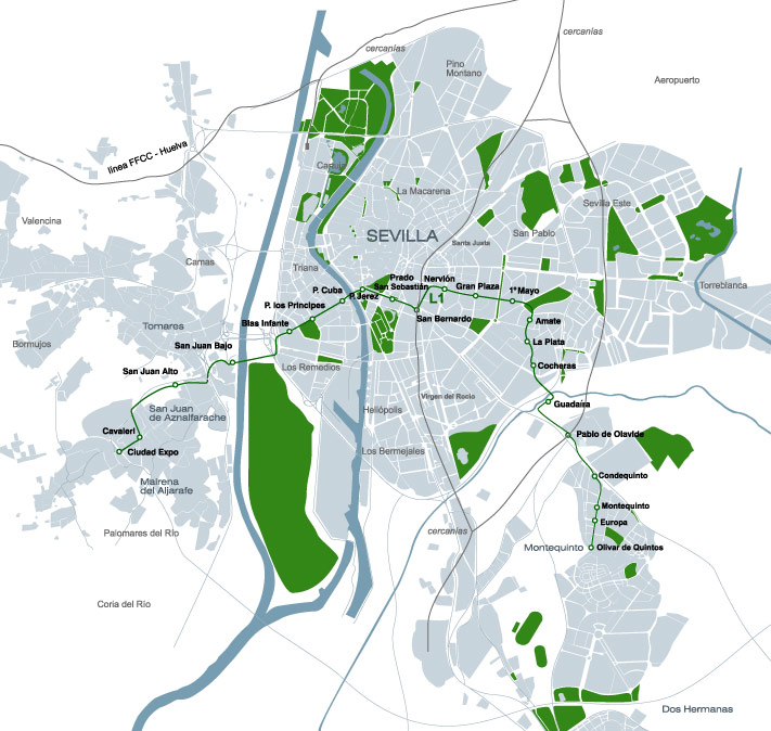 (08/09/2010) Las líneas 2, 3 y 4 del Metro de Sevilla constan de una longitud total de 41 kilómetros, con un trazado subterráneo en el 80 por ciento de su extensión, según las alternativas preferentes. En este recorrido se incluyen sesenta estaciones, y el presupuesto de ejecución previsto asciende a 2.843 millones de euros. Estas tres líneas, sumadas a la Línea 1, en funcionamiento, y a sus conexiones tranviarias en Alcalá de Guadaíra y Dos Hermanas, permitirán que más de 700.000 habitantes (población servida) dispongan de una estación a quinientos metros de su residencia.