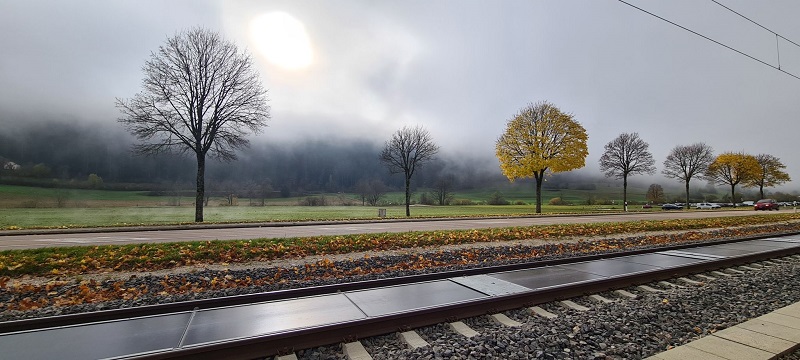 Este sistema se ha estrenado en Buttes, un pequeño pueblo del oeste de Suiza. En Se trata de la primera central solar desmontable instalada entre los raíles de una vía en servicio que se compone de 48 paneles fotovoltaicos desplegados en cien metros de vía. Los trabajos comenzaron en abril de 2025 por parte de SNCF y la empresa Sun-Ways. En esta línea opera la empresa de transporte público del cantón de Neuchâtel transN.