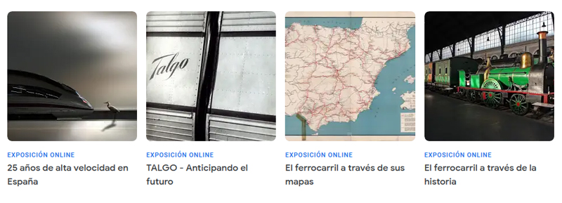 El espacio de la Fundación de los Ferrocarriles Españoles en Google Arts & Culture cuenta otras exposiciones anteriores, “Talgo - Anticipando el futuro”, “25 años de alta velocidad en España” y “El ferrocarril a través de sus mapas”. La muestra sobre Talgo, centrada en la evolución de la tecnología ferroviaria, se preparó con motivo de “Once Upon a Try”, el proyecto de Google Arts & Culture sobre inventos y descubrimientos de la humanidad en el que la Fundación colaboró.