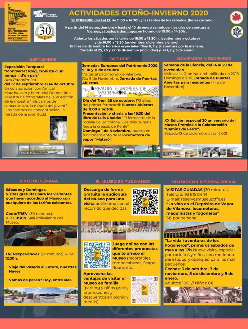 El Museo del Ferrocarril de Cataluña, gestionado por la Fundación de los Ferrocarriles Españoles ha dado a conocer su actividades para la temporada de otoño- invierno que se abre hoy 15 de septiembre.