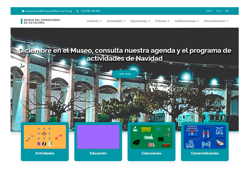 El nuevo desarrollo www.museudelferrocarril.org ofrece una presentación más intuitiva y completa en cuanto a información e indicaciones para planificar la visita y para navegar por las colecciones y exposiciones, y mejora el acceso a las actividades y actos del Museo. En la nueva web del Museo de Vilanova i la Geltrú también se puede encontrar material pedagógico y juegos para la divulgación del ferrocarril en centros educativos y culturales y familias.