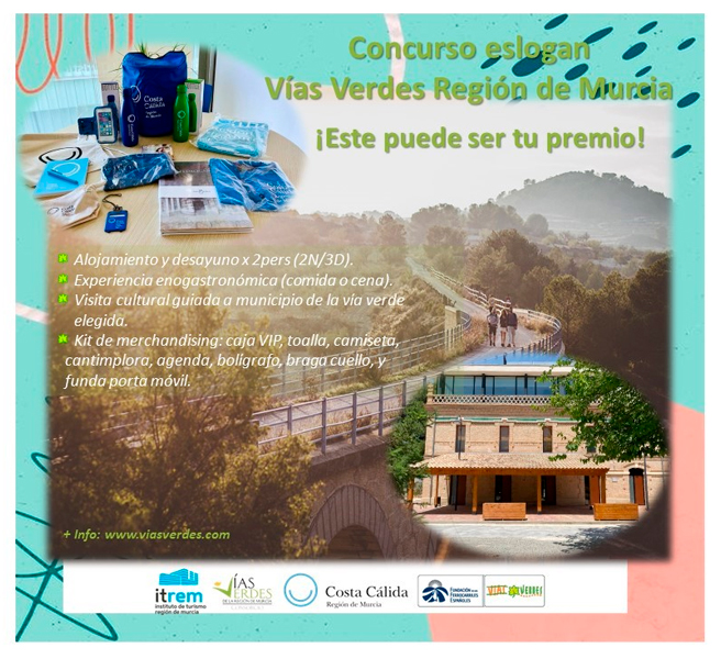 La Fundación de los Ferrocarriles Españoles, el Instituto de Turismo de la Región de Murcia y el Consorcio de Vías Verdes Región de Murcia han convocado un concurso para elegir un nuevo eslogan de las Vías Verdes de la región.