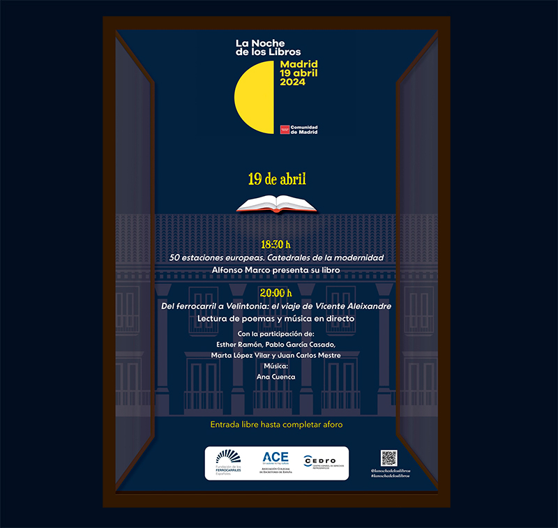 A continuación, a las 20:00 horas, en colaboración con la Asociación Colegial de Escritores de España, se presenta ‘Del ferrocarril a Velintonia. El viaje de Vicente Aleixandre’, una lectura de obras del Premio Nobel español, enmarcadas por una actuación musical. Vicente Aleixandre estuvo estrechamente ligado al ferrocarril: su padre trabajó como ingeniero y jefe de Vía y Obras en la Compañía de Ferrocarriles Andaluces, y él mismo desempeñó labores administrativas allí y en ‘Norte’.