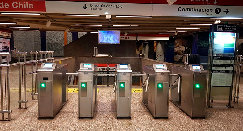 Indra ha renovado 1.120 puntos de acceso de Metro de Santiago y de Empresa de Los Ferrocarriles del Estado de Chile, con un validador, dotado de lector de tarjetas bancarias y códigos QR, y una pantalla que favorece la interacción con el usuario.