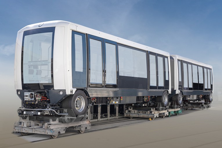 El primero del total de doce vehículos, fábricado en Viena realizará sus primeros viajes de prueba previstos para 2023. La nueva Sky Line complementará el sistema de transporte entre las Terminales 1 y 2 y podrá transportar hasta 4.000 personas por hora y sentido. Los vehículos incluyen asientos plegables, para garantizar espacio para equipajes, y barras de apoyo, especialmente diseñadas para ofrecer mayor libertad de movimiento.