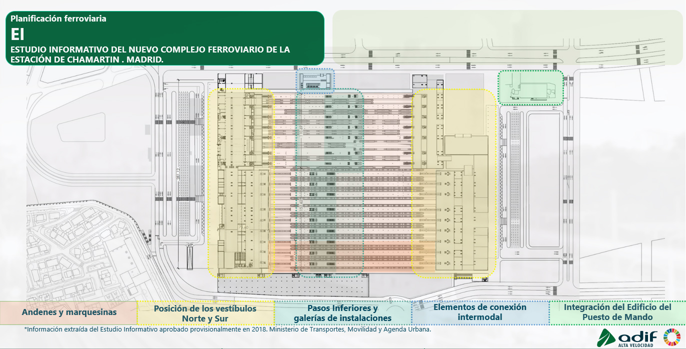 El objeto del mismo es la modificación del complejo ferroviario de la estación de Madrid-Chamartín, así como su esquema de explotación actual tanto a nivel de vías y andenes como del edificio de viajeros, para atender al aumento de circulaciones de alta velocidad. Además, se define el ramal de conexión de la playa de vías de ancho estándar de la estación con el canal de conexión del aeropuerto, en su tramo entre Chamartín y la estación de Fuente la Mora.