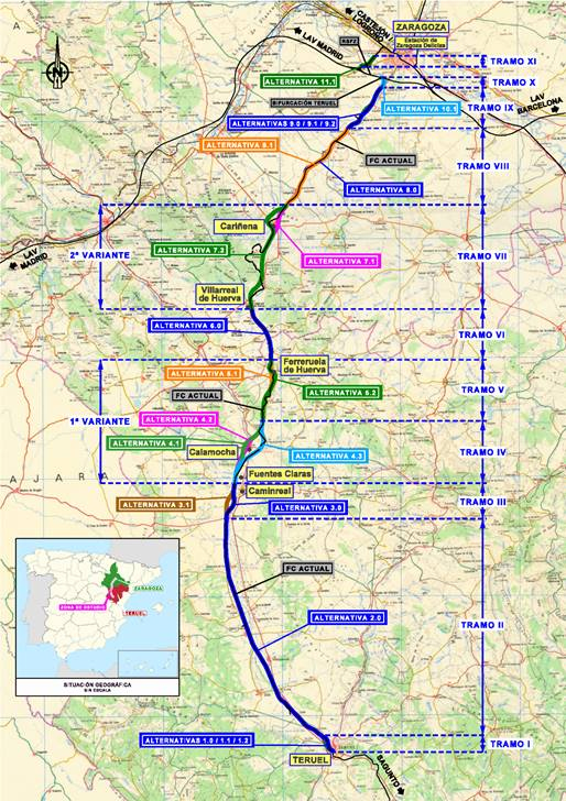 La actuación contemplada en el “Estudio Informativo del Corredor Cantábrico – Mediterráneo de Alta Velocidad. Tramo: Teruel – Zaragoza”supondrá la reconversión de la actual línea 02-610 de la Red Ferroviaria de Interés General, entre Bifurcación Teruel, en la Ronda Sur Ferroviaria de Zaragoza, y la ciudad de Teruel, en una línea apta para servicios de altas prestaciones y tráfico mixto en ancho convencional.