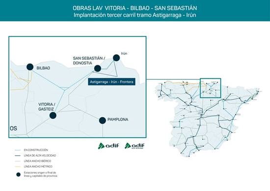 Esta actuación dará continuidad a la línea de alta velocidad Vitoria-Bilbao-San Sebastián y permitirá la conexión con la frontera francesa, por la línea Madrid-Hendaya.