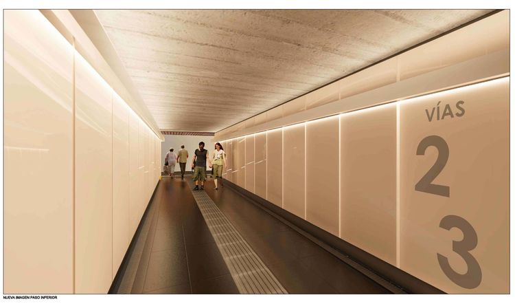 Se incluyen también nuevos acabados, instalaciones e iluminación en el paso inferior y embocaduras, recorte de marquesinas para cumplir la normativa de gálibos, así como nuevas barandillas y pasamanos en embocaduras.