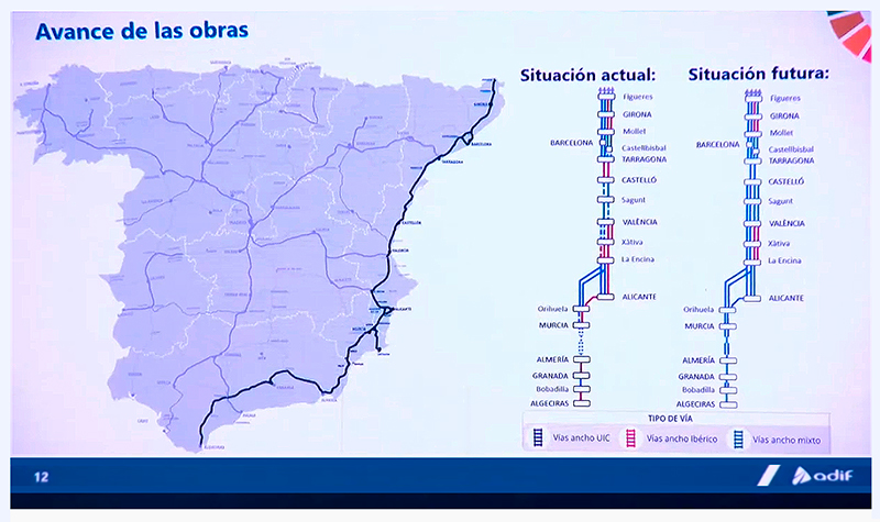 - La conexión entre Alicante y Valencia en ancho estándar estará muy avanzada. Habrá finalizado la vía en ancho ibérico y estará muy desarrollado el cambio de ancho del nudo de la Encina, con lo que se estará a las puertas de conectar las tres capitales provinciales de la Comunidad Valenciana con ancho estándar.