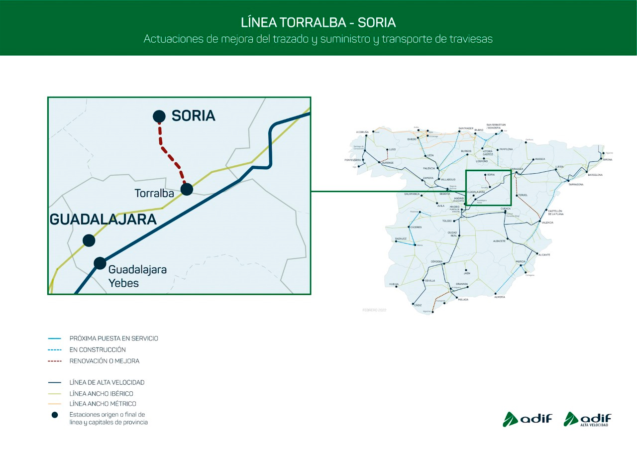 La vía se renovará entre la estación de Torralba en el punto kilométrico 0/000, y el pk 13/000, así como entre el pk 58/480 y la estación de Soria en el pk 92/704. La línea Torralba-Soria tiene una longitud de unos 93 km, de los que ya han sido renovados los comprendidos entre el p.k. 12/800 y el 58/450.