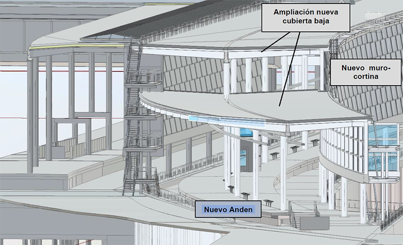 Por otra parte, Adif AV tiene en marcha la construcción de nuevos accesos a la marquesina histórica de la estación desde la glorieta de Carlos V, así como el acondicionamiento de la propia marquesina, con una inversión de 56,5 millones de euros.