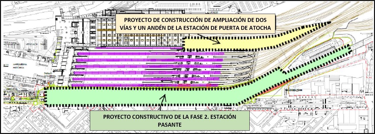 La actuación se enmarca en la Fase 2 de la ampliación de la estación, que recoge diversas actuaciones, entre ellas, una estación pasante, licitada ya por 514,3 millones de euros, que contará con cuatro vías y dos andenes. Conectará el nuevo túnel en ancho estándar entre las estaciones de Chamartín y Puerta de Atocha, con el nuevo acceso sur de alta velocidad y posibilitará la parada de trenes en ambas estaciones.