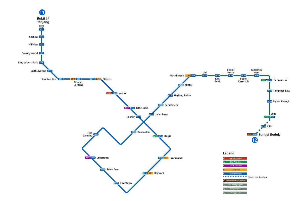 La Downtown Line 3 de Singapur (DTL3), ha entrado en servicio permitiendo los trayectos directos desde las áreas noroccidental y oriental de la isla al Distrito Central de Negocios (CBD) y a Marina Bay, a través de 16 estaciones repartidas en los 21 kilómetros de longitud del tramo más largo de la línea. Con este nuevo tramo se consigue una apreciable mejora de la conectividad entre zonas residenciales e industriales