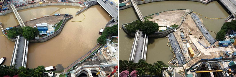 Obras de construcción del desvío del río Singapur (Noviembre 2012). Foto: LandTransport Authority Singapore