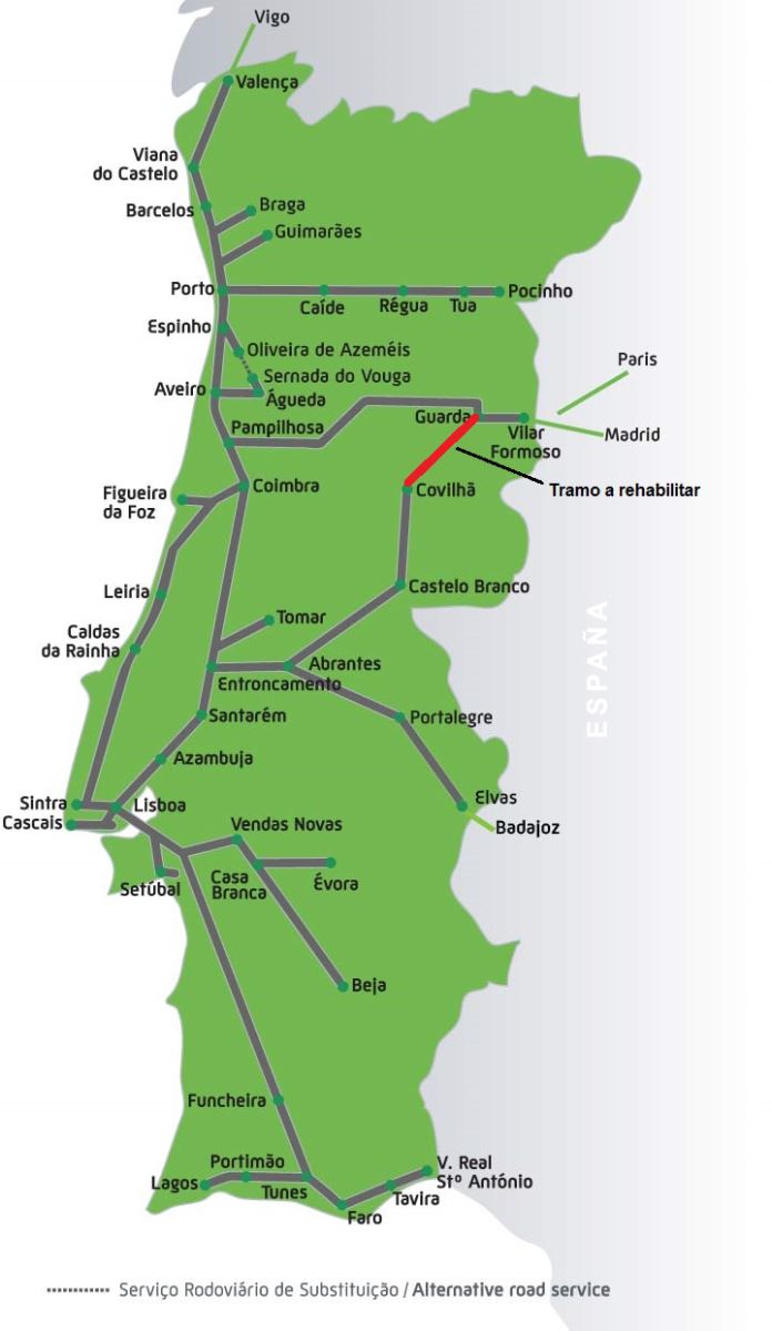 Infraestruturas de Portugal (IP) ha hecho público el contrato para la modernización y electrificación del tramos Covilha-Guarda en la línea de Beira Baixa. La intervención se va a llevar a cabo en una sección de unos 46 kilómetros de longitud entre ambas estaciones e incluye la conexión entre las líneas de Beira Baixa y Beira Alta, que incluye el puente sobre el río Diz.