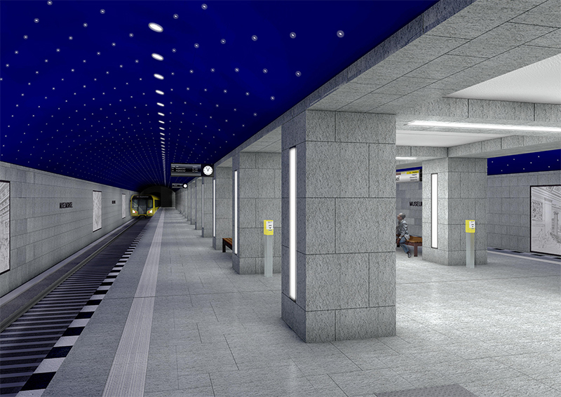 Después de completar el trabajo estructural en las estaciones subterráneas Rotes Rathaus y Unter den Linden, comenzó la construcción de las nuevas vías que incluyen sistemas para reducir la contaminación acústica. Con la finalización de la vía en la estación de la Isla de los Museos a principios de año, se ha completado la línea y ahora se están instalando los sistemas de señalización, que se probarán a finales de abril.