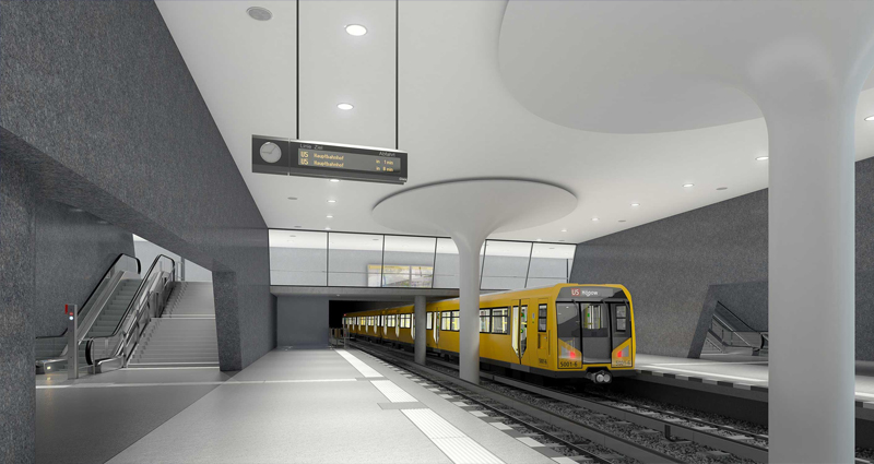 La extensión de la línea U5 conectará Alexanderplatz con la línea U55, entre la Puerta de Brandenburgo y la estación principal de Berlín y contará con dos nuevas estaciones intermedias, Rotes Rathaus y Unter den Linden, sirviendo también a Museuminsel. La línea U55, diseñada como el extremo occidental de la nueva línea U5, entró en servicio en 2009 y los trabajos en el tramo Alexanderplatz - Puerta de Brandenburgo se iniciaron en 2012.