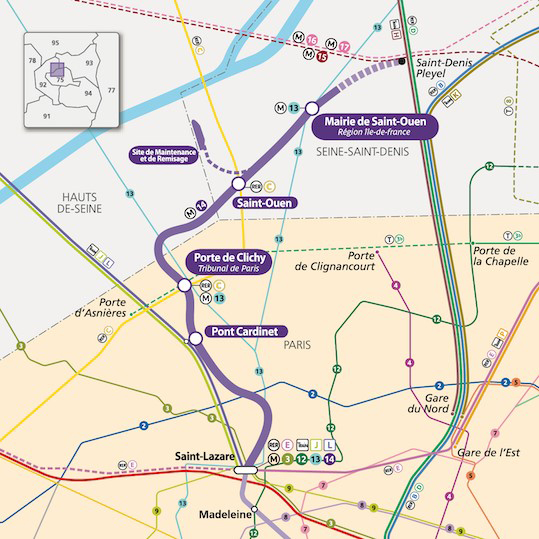 Se ha inaugurado la ampliación de la línea 14 del metro de París hasta Mairie Saint-Ouen, de 5,8 kilómetros con cuatro nuevas estaciones que contribuirá a bajar la saturación de la línea 3 en un 25 por ciento, mejorando el servicio a 650.000 viajeros diarios.