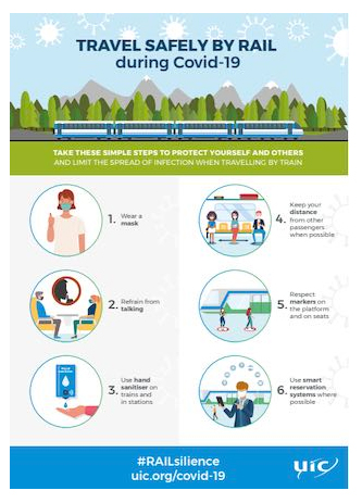 El Grupo de Trabajo UIC Covid-19, ha publicado el informe titulado "Tasas de infección en los trenes" con el objetivo de restaurar la confianza de los viajeros y alentarlos a regresar al transporte público. El documento presenta evidencias científicas, estudios de casos y modelos matemáticos, que demuestran que la posibilidad de contagio en el transporte público y entre el personal del tren, es muy baja.