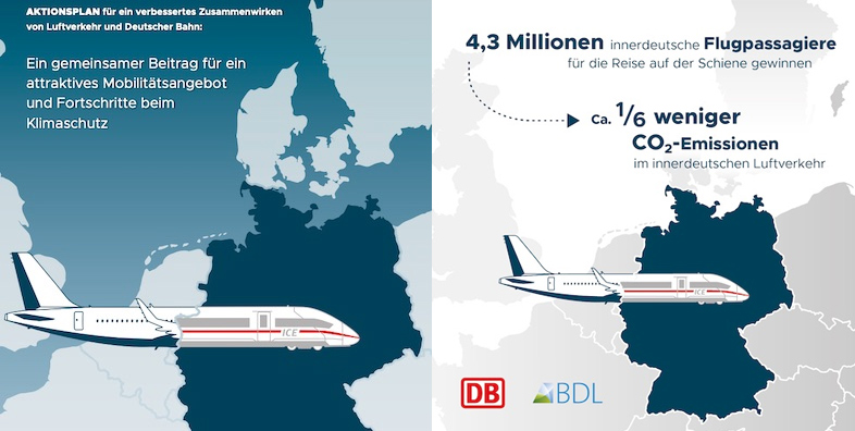 Tanto BDL como DB , consideran que, potencialmente, hay un 20 por ciento de viajeros que optarían por el ferrocarril y no por los vuelos nacionales, y quieren aprovechar ese potencial en los próximos años con ofertas atractivas y una expansión de las infraestructuras para conseguir que 4,3 millones de viajeros opten finalmente por el tren. Como consecuencia, la participación del tráfico aéreo nacional en las emisiones de dióxido de carbono en Alemania, podría reducirse en una sexta parte.