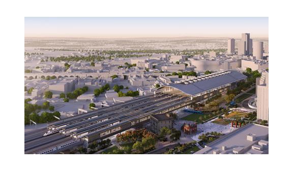 (14/05/2021)  El contrato se llevará a cabo en dos fases, en la primera se concluirá el diseño detallado de la nueva estación, inspirado en los grandes techos abovedados del ferrocarril victoriano y desarrollado con tecnologías sostenibles que incluirán la captura de agua de lluvia y la utilización de energías renovables, con más de 2.800 metros cuadrados de paneles solares ubicados en las marquesinas de los andenes.