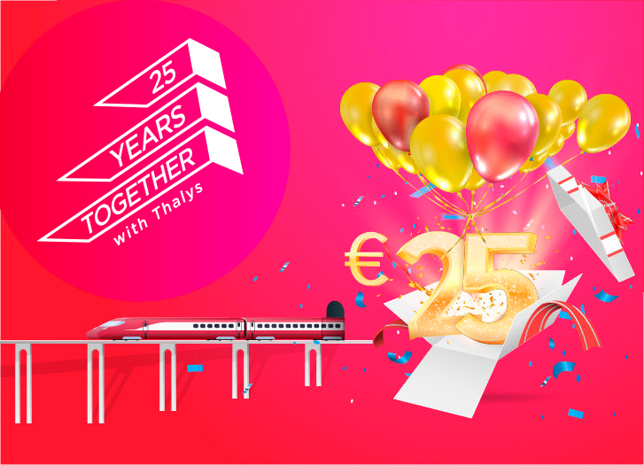 El operador de alta velocidad Thalys celebra su vigesimoquinto aniversario ofreciendo, hasta el 14 de junio, más de 40.000 billetes a veinticinco euros con destinos a Bélgica, Alemania y Holanda, para viajes que se realicen entre el 28 de junio y el 3 de septiembre.