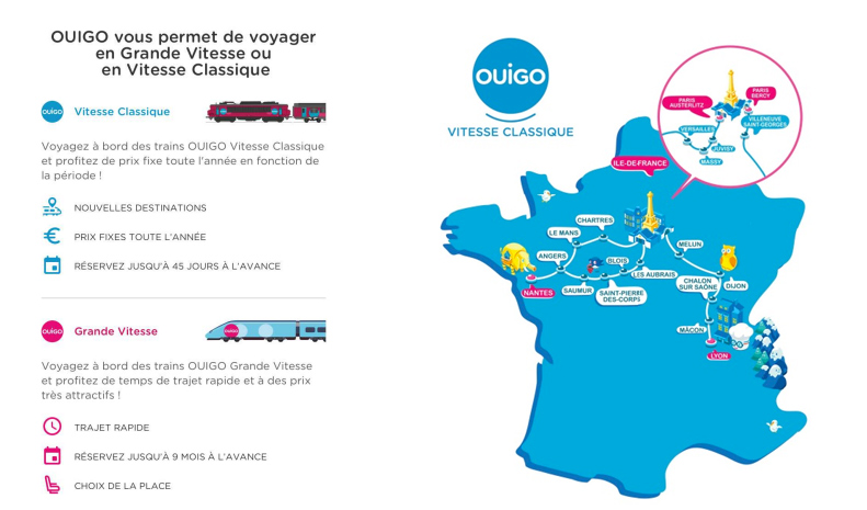 Ouigo comenzará a operar el nuevo servicio desde París a Lyon y Nantes, sirviendo a un total de catorce ciudades, como alternativa al vehículo privado para más de un millón de viajeros anuales atraídos por un precio del billete entre los diez y los treinta euros, más que por tiempos de viaje más corto.