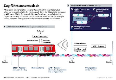 La nueva tecnología implementada en el S-Bahn Hamburg digital se basas en el estándar europeo ATO, Automatic Train Operation, combinado con el sistema europeo de control de trenes ETCS, European Train Control System. A partir de diciembre, los cuatro trenes se integrarán en la malla y el horario normal.