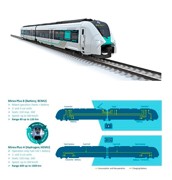 El tren de hidrógeno se está desarrollando sobre la base del Mireo Plus de Siemens que incoporará las baterías de combustible de última generación suministradas por Saft. El Mireo Plus ofrece caracterñisticas de opotencia, aceleración y rango operativo que la conversión a la propulsión de hidrógeno debe mantener.