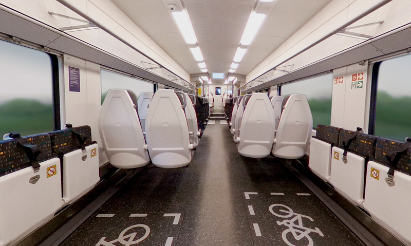 Cada composición cuenta con dos coches motores extremos de un solo piso y cuatro coches remolques intermedios, de dos pisos. Las ventanas tienen un revestimiento especial para mejorar la recepción señal telefónica; wifi y tomas de corriente en todo el tren; monitores; indicadores de ocupación en tiempo real; puertas anchas; entradas adaptables a diferentes alturas del andén y espacio para bicicletas, sillas de ruedas y cochecitos para niños.