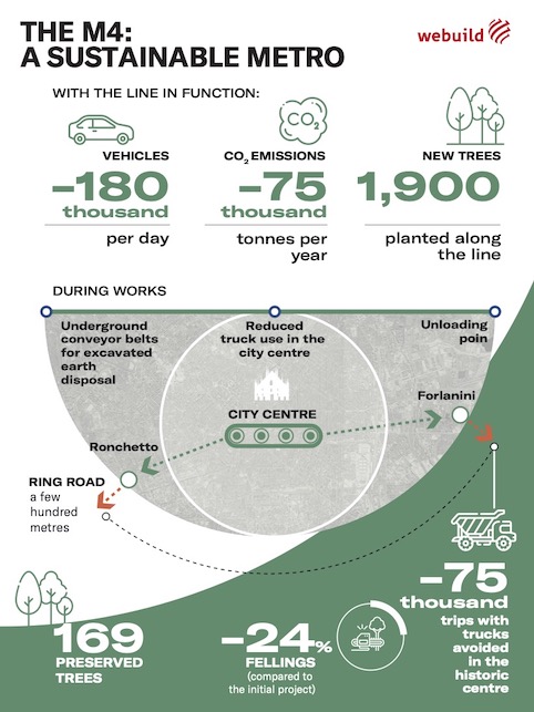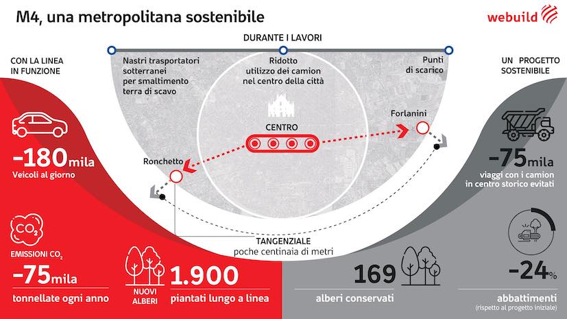 El primer tramo de la línea de metro M 4 de Milán, ha comenzado sus operaciones. La línea completa, que tendrá quince kilómetros de longitud y veintiuna estaciones, cruzará el centro histórico de la ciudad en sólo treinta minutos, conectando el aeropuerto de Linate, enel este, con el oeste, para llegar a la estación de San Cristoforo.