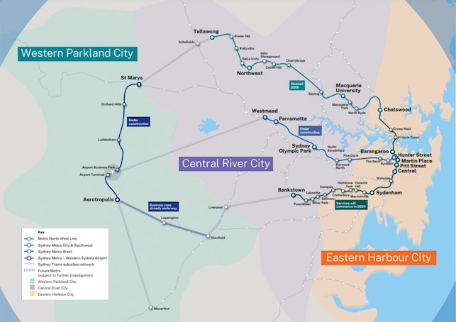 Estas líneas se integrarán cen la red del metro de Sídney y conectarán con las líneas Sydney Metro North West existente, que se completó en 2019; Sydney Metro City y South West, que están en construcción y entrarán en funcionamiento en 2024. También se conectarán al Sydney Metro West , proyecto adjudicado al consorcio Acciona/Ferrovial en 2021, que estará terminado en 2030 (ver noticia), y al Aeropuerto de Western Sydney que se inaugurará en 2026, (ver Noticia).