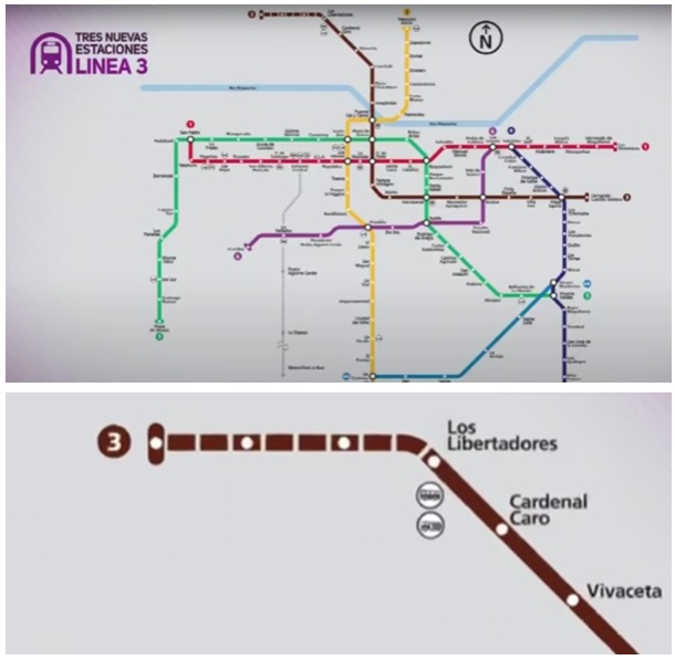 Metro de Santiago de Chile ha realizado el primer viaje de pruebas de la extensión de línea 3 (Ver noticia), un recorrido entre las estaciones Ferrocarril y Plaza de Quilicura. La extensión, que beneficiará a 271.000 personas, ha precisado una inversión de 378,5 millones de dólares, unos 352 millones de euros.