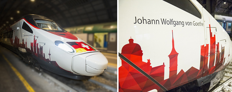 La presentación incluyó el bautismo de un tren ETR 610 de SBB, con el nombre del poeta Johann Wolfgang von Goethe, viajero habitual, en su época, entre Suiza e Italia.
