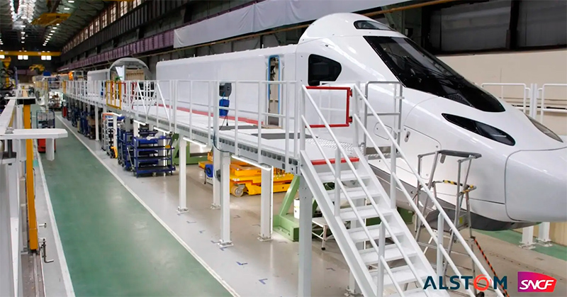 Los Ferrocarriles Franceses, SNCF, y Alstom han presentado la cabeza tractora del nuevo tren de alta velocidad TGV Mm de la nueva plataforma Avelia Horizon, en la factoría de Belfort. Las primeras unidades del nuevo tren entrarán en servicio en 2024.