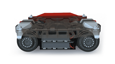 La plataforma se monta sobre dos bogies, cada uno con cuatro ruedas con motor eléctrico de imanes permanentes, alimentados por una batería de alta densidad. Cada unidad motriz está equipada con sensores para reconocer el entorno y sistema de comunicación una central de gestión de flotas que coordinaría las operaciones. La capacidad de detectar peligros hace posible que se detenga ante cualquier incidencia.