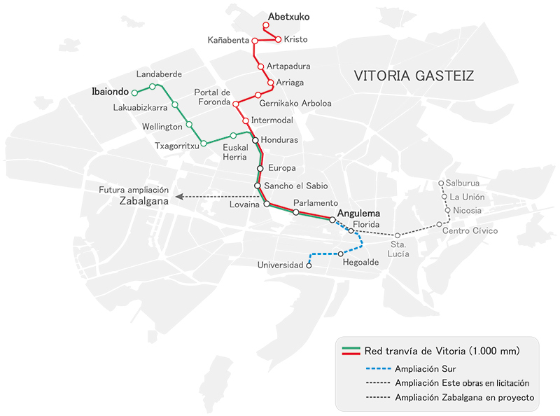 Asimismo, las obras han permitido la ampliación de la red de carril bici en 1,3 kilómetros y diversos trabajos de urbanización en las calles por las que discurre la traza. También se ha tenido presente la futura ampliación de línea hacia el barrio de Salburua a partir de la parada de Florida, cuyas obras comenzarán en las próximas semanas. De hecho, la actual actuación ha incluido una vía mango de maniobras en dirección a dicho distrito, situado al este de la capital alavesa.