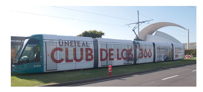 La campaña aprovechará el enorme impacto del tranvía en la trama urbana en su recorrido por la línea 1 que permitirá que la campaña del Club de los 300 sea vista no solo por quienes utilizan el servicio, sino por toda la población residente y visitante del área metropolitana.