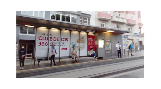 (17/03/2021) Con esta colaboración, Tranvía de Tenerife ayuda a dar difusión a la  campaña “El Club de los 300 donantes”, en la que da visibilidad al número de donaciones diarias que Canarias necesita para atender las demandas hospitalarias y para mantener el stock del banco de sangre. El operador ha materializado ese llamamiento a la solidaridad con el mensaje: “Únete al Club de los 300”, apelando al sentimiento de pertenencia.